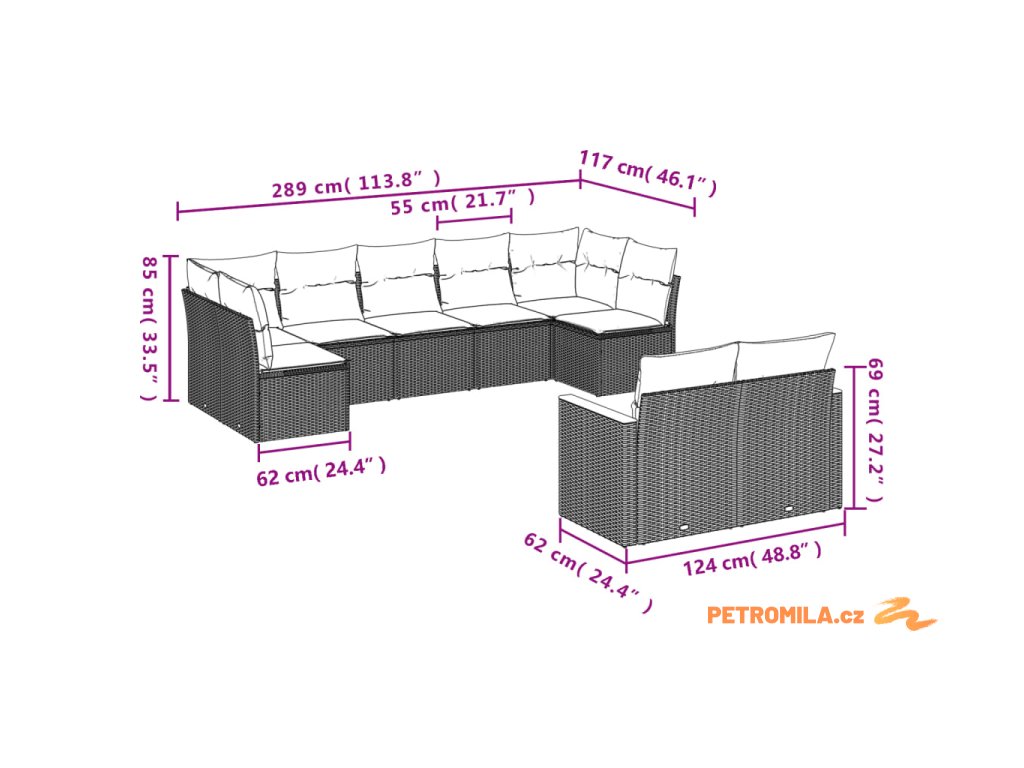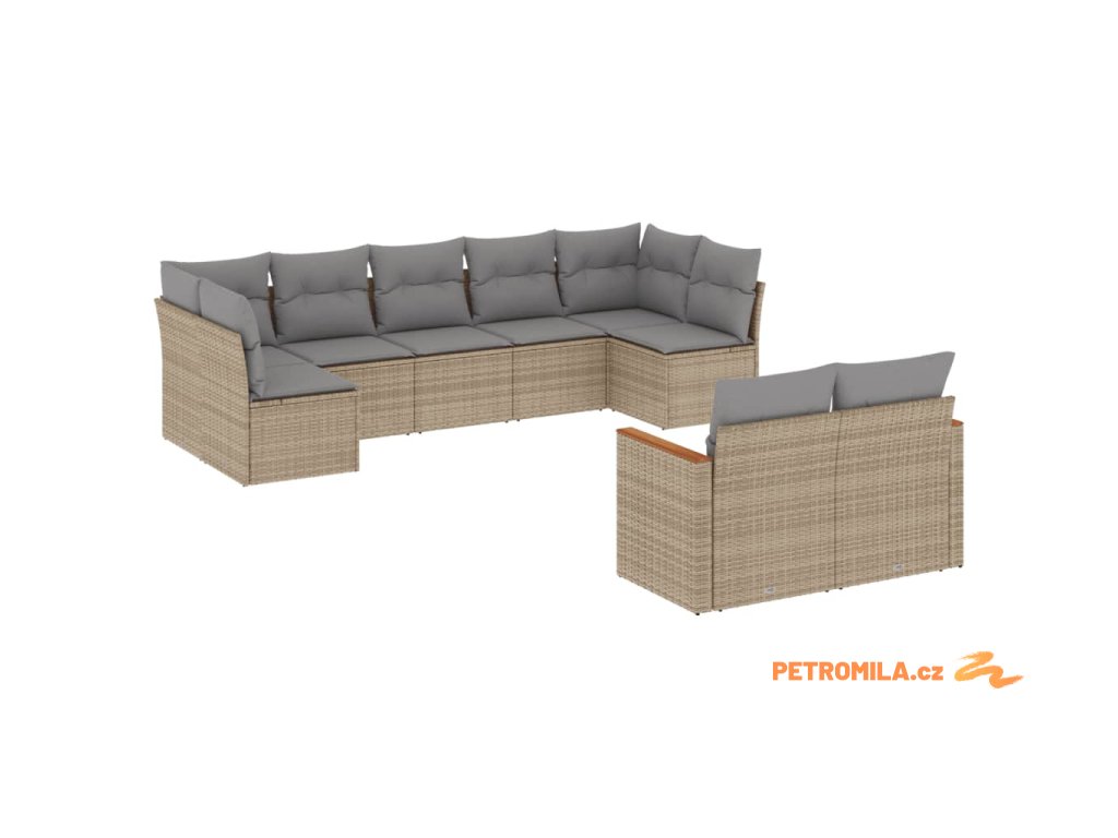 Sada zahradních pohovek s polštářem 9 pcs Béžová Poly ratan