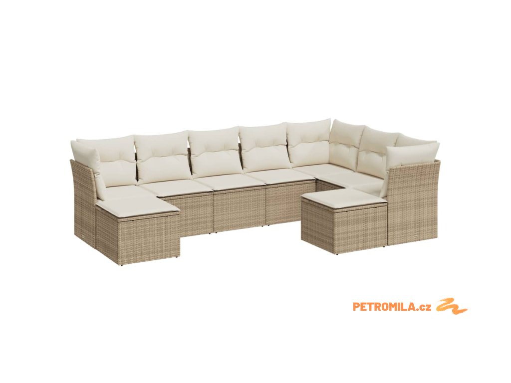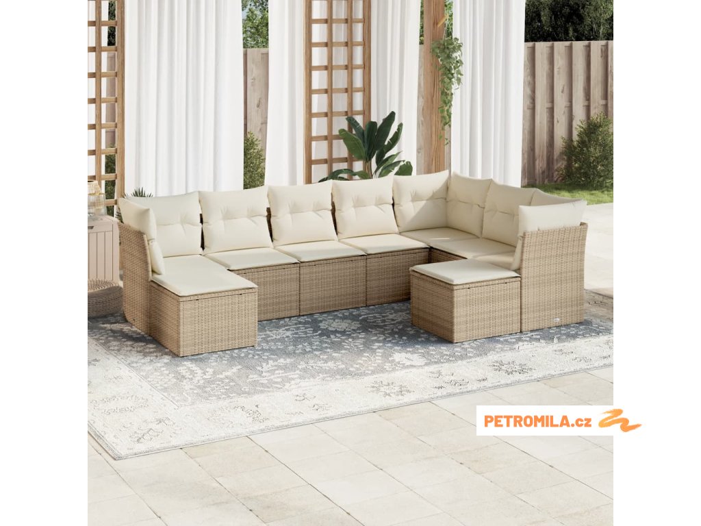 9dílná zahradní sedací souprava s poduškami béžová polyratan