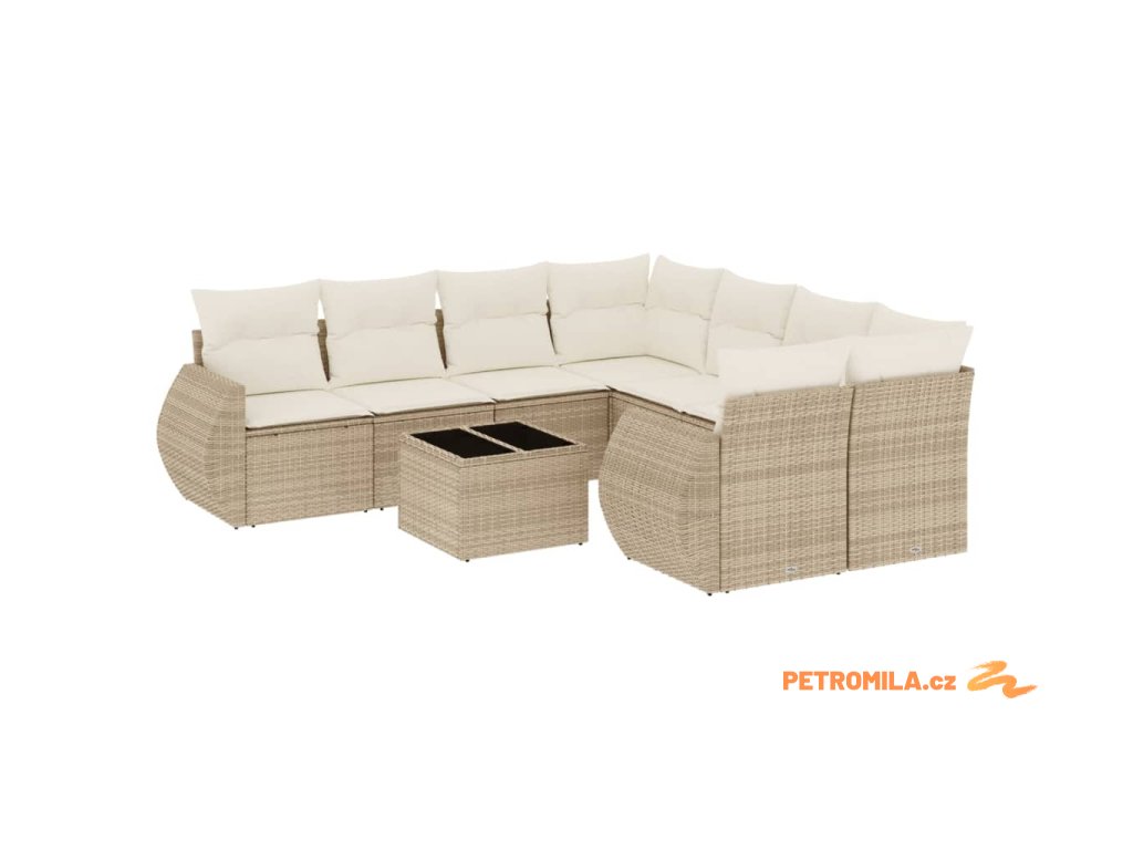 9dílná zahradní sedací souprava s poduškami béžová polyratan