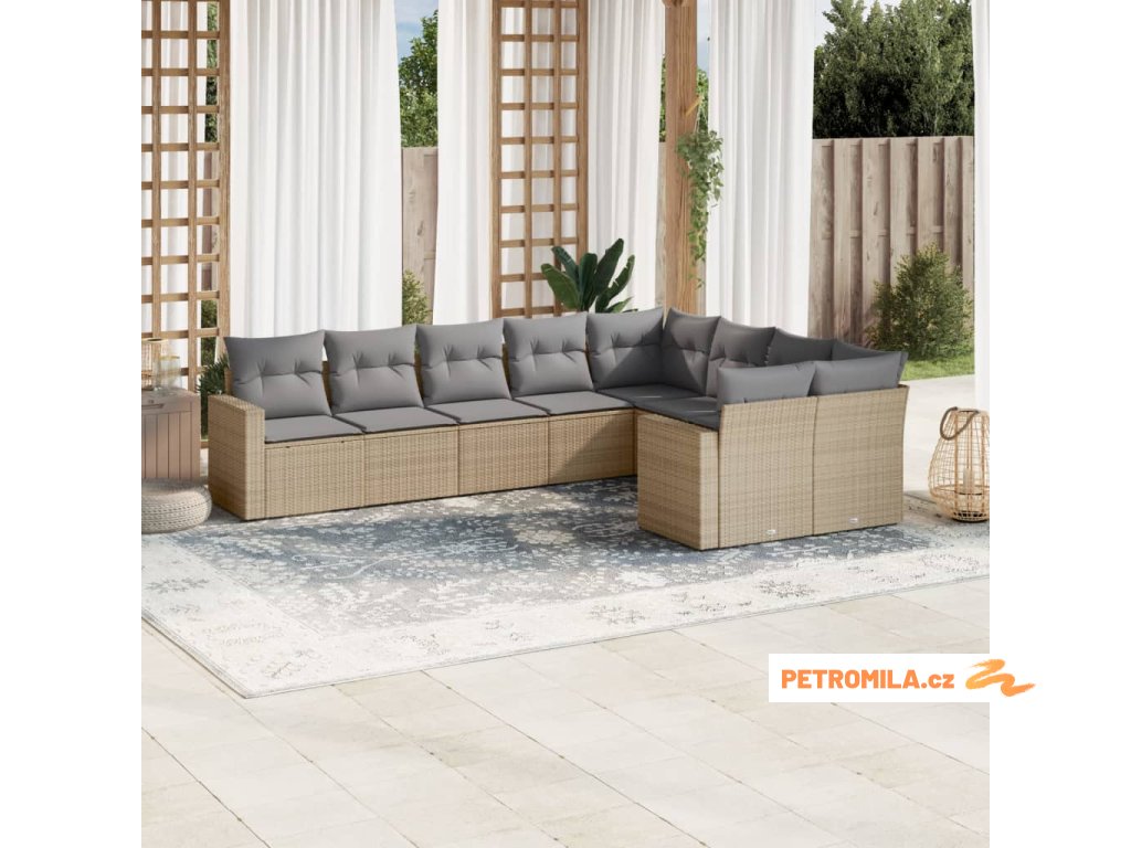9dílná zahradní sedací souprava s poduškami béžová polyratan