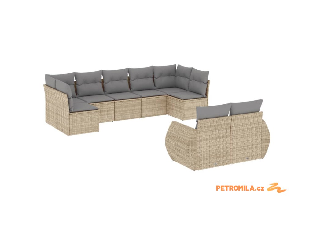 Sada zahradních pohovek s polštářem 8 pcs Béžová Poly ratan