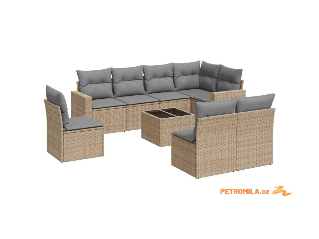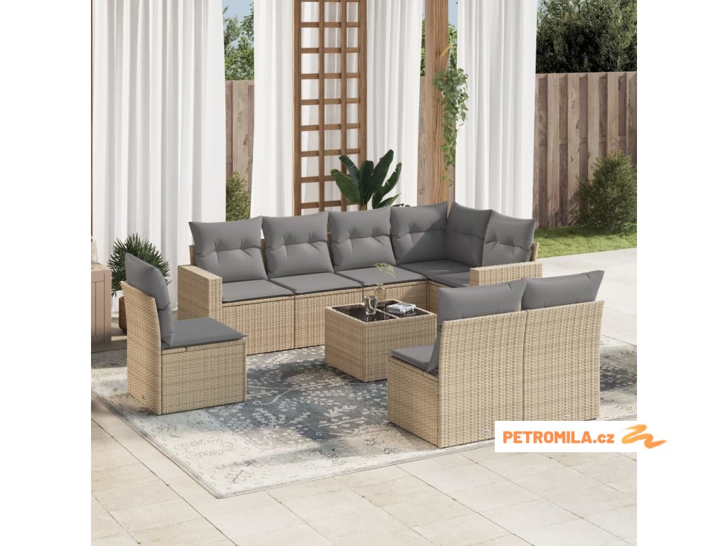 9dílná zahradní sedací souprava s poduškami béžová polyratan