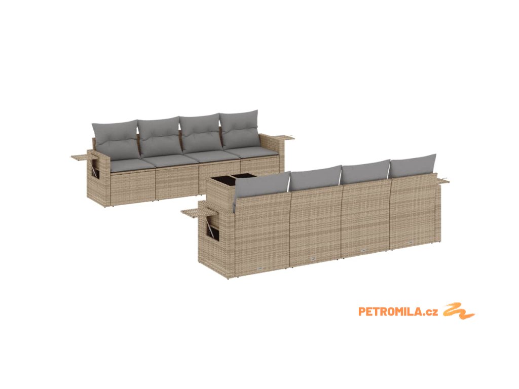 Sada zahradních pohovek s polštářem 8 pcs Béžová Poly ratan