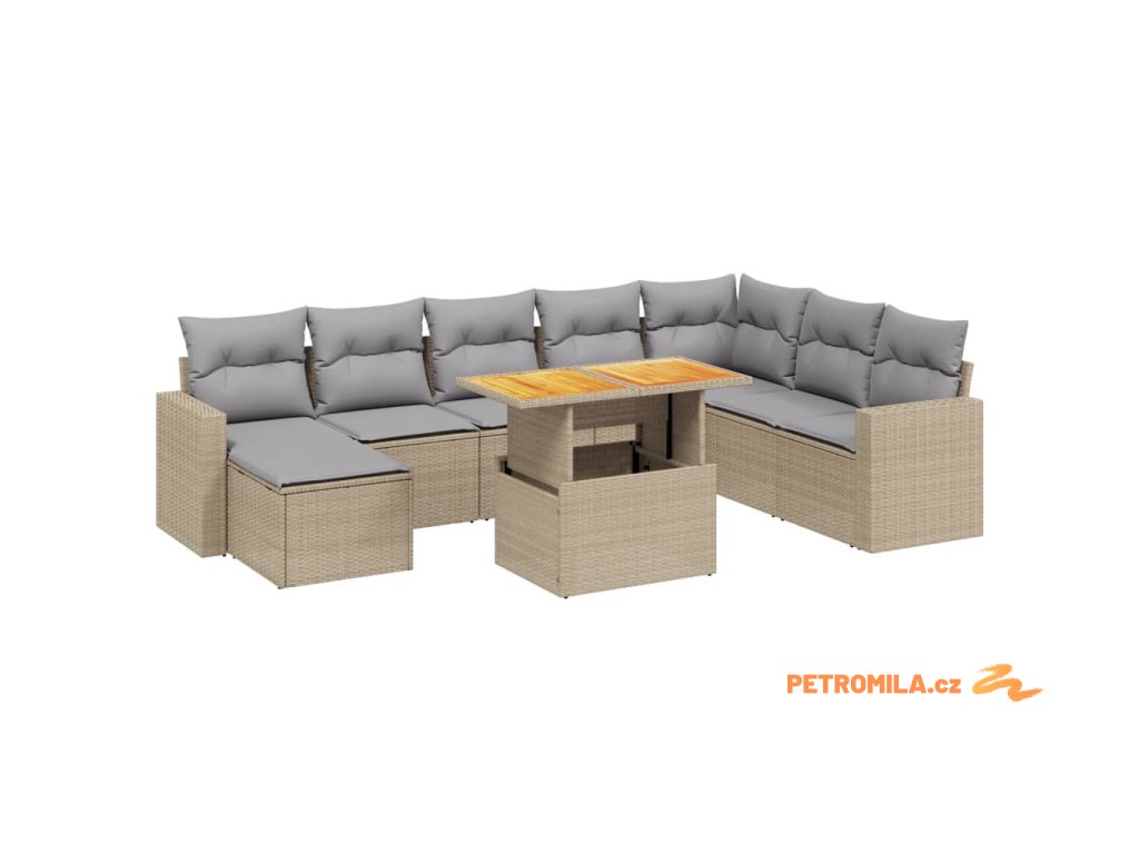 9dílná zahradní sedací souprava s poduškami béžová polyratan