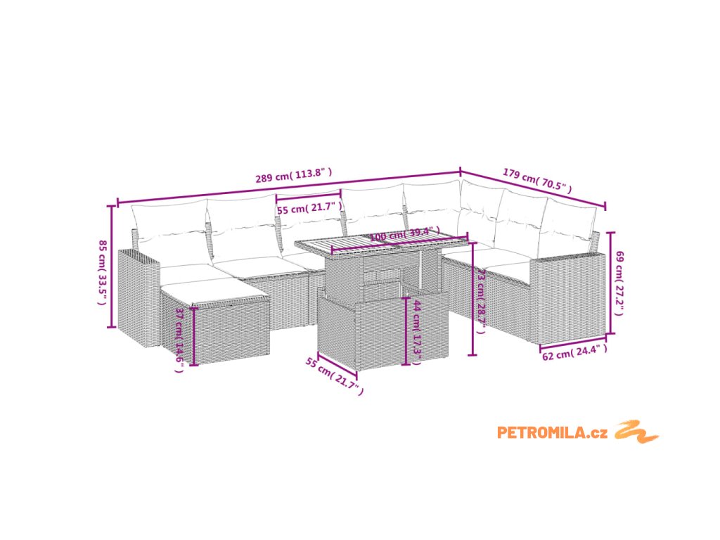Sada zahradních pohovek s úložištěm 11 pcs Šedá Poly ratan