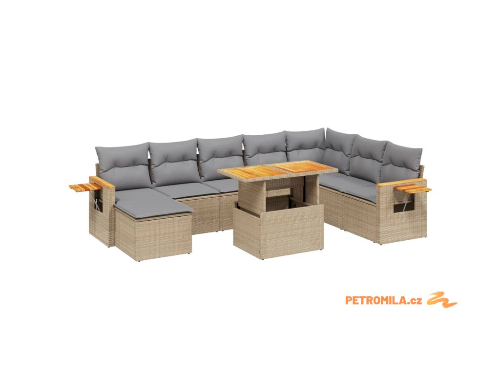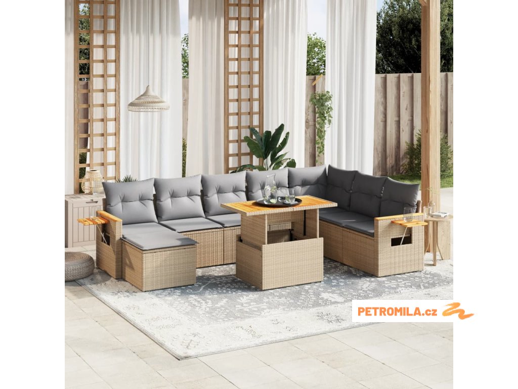 9dílná zahradní sedací souprava s poduškami béžová polyratan