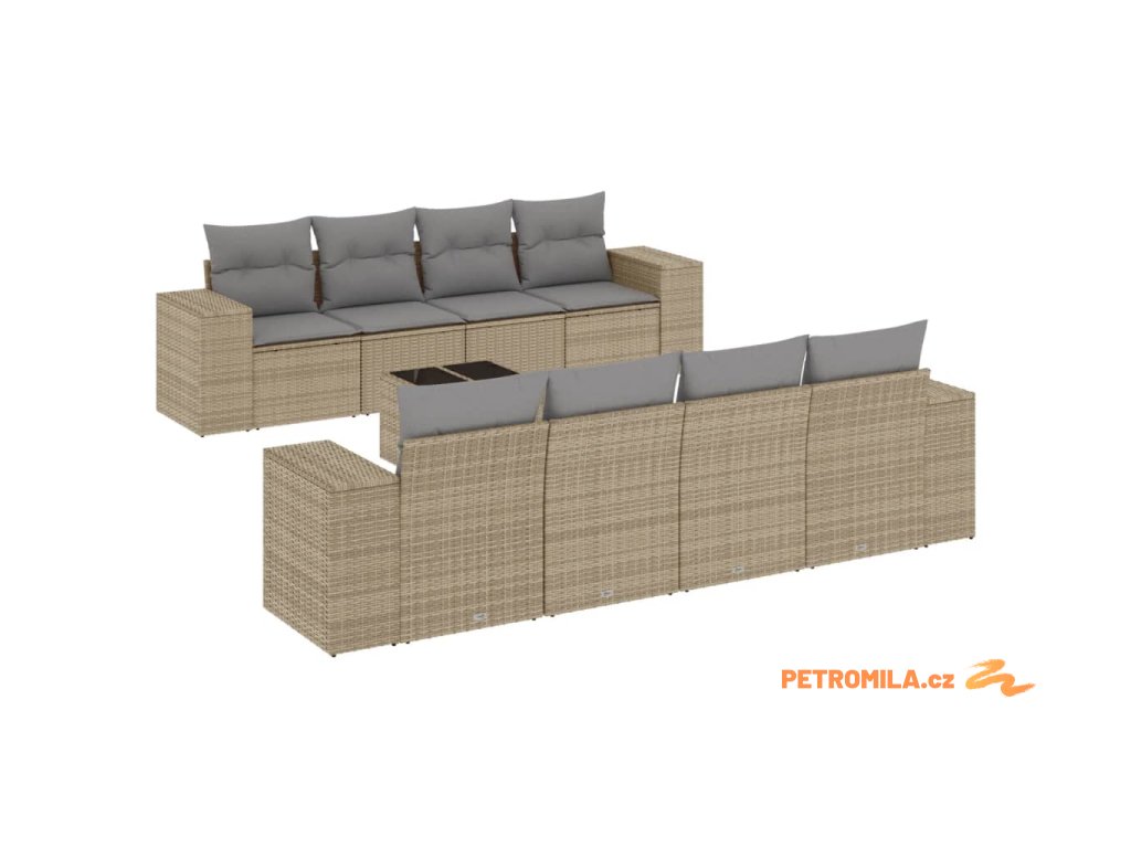 Sada zahradních pohovek s polštářem 8 pcs Béžová Poly ratan