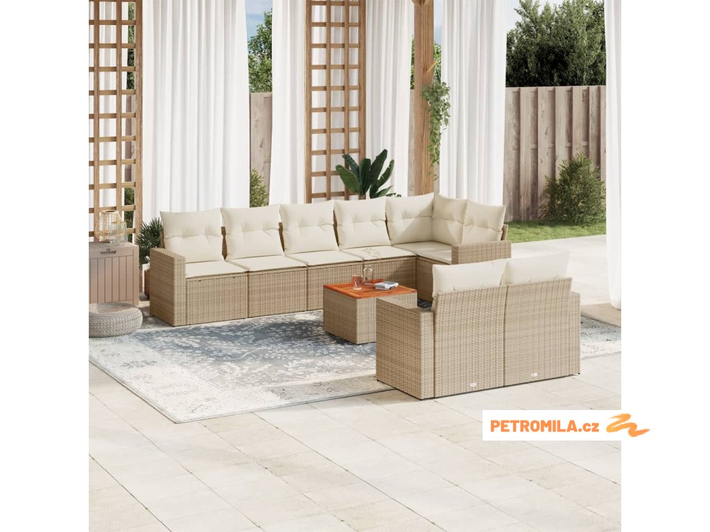 9dílná zahradní sedací souprava s poduškami béžová polyratan