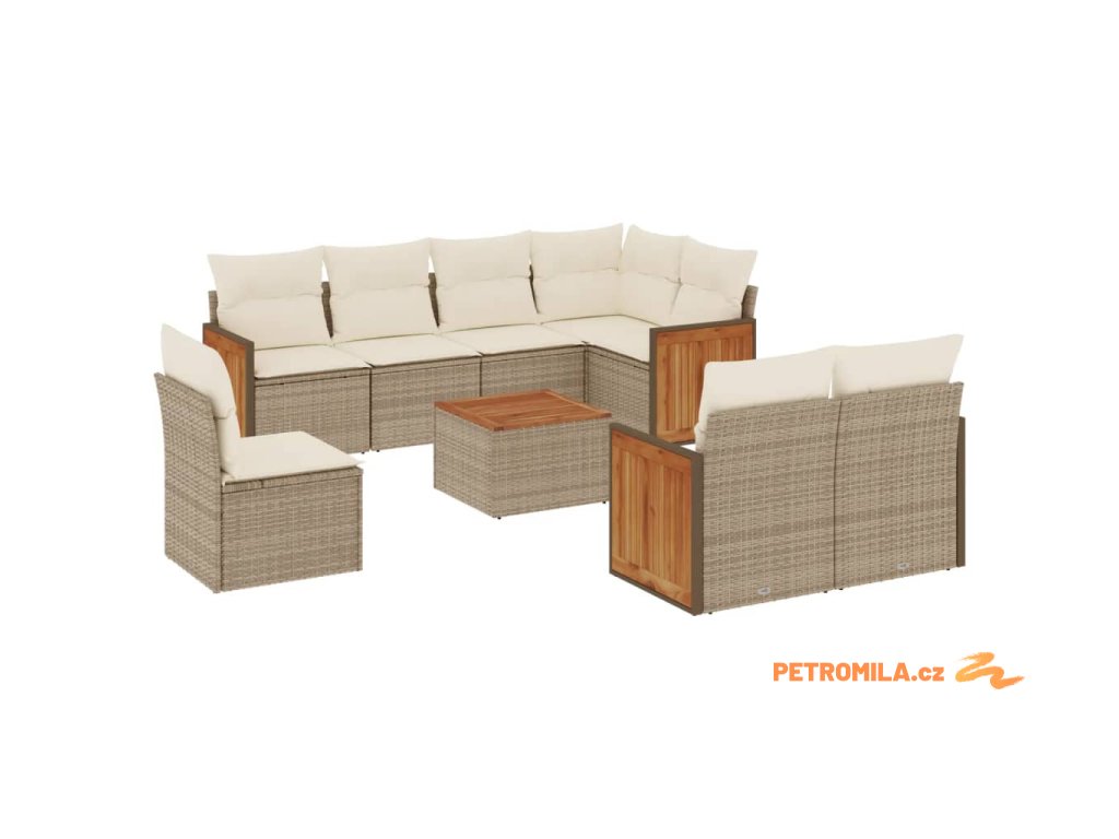 Sada zahradních pohovek s polštářem 8 pcs Béžová Poly ratan