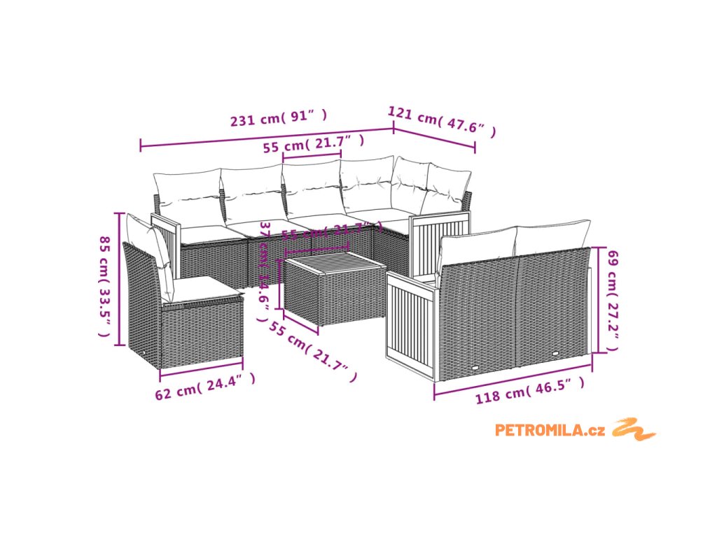Sada zahradních pohovek s polštářem 9 pcs Béžová Poly ratan