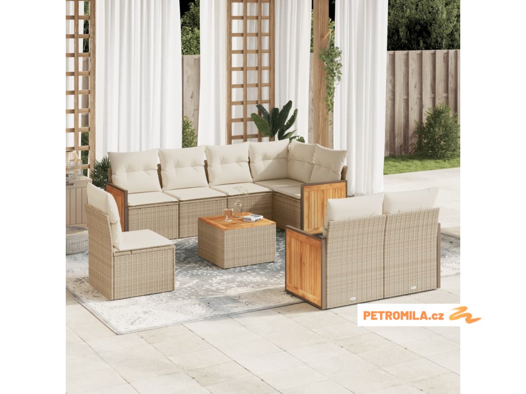 9dílná zahradní sedací souprava s poduškami béžová polyratan