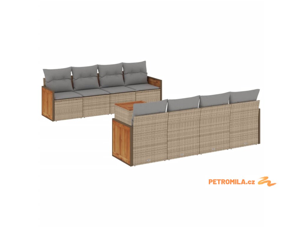 9dílná zahradní sedací souprava s poduškami béžová polyratan