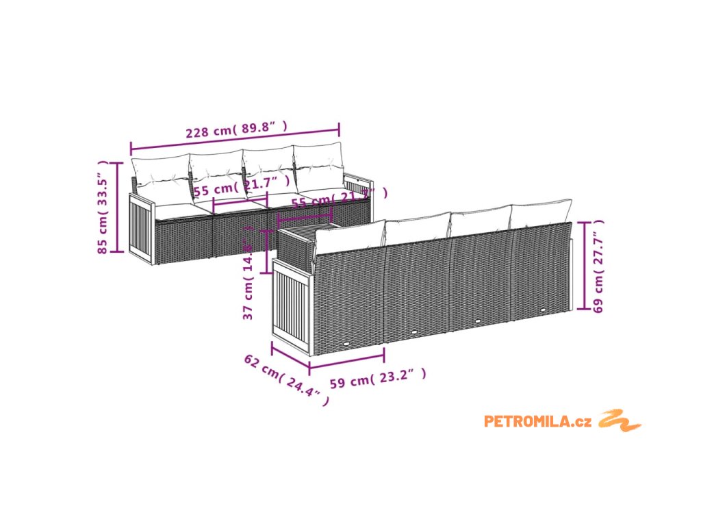 - Materiál: PE ratan, masivní akáciové dřevo s olejovou povrchovou úpravou