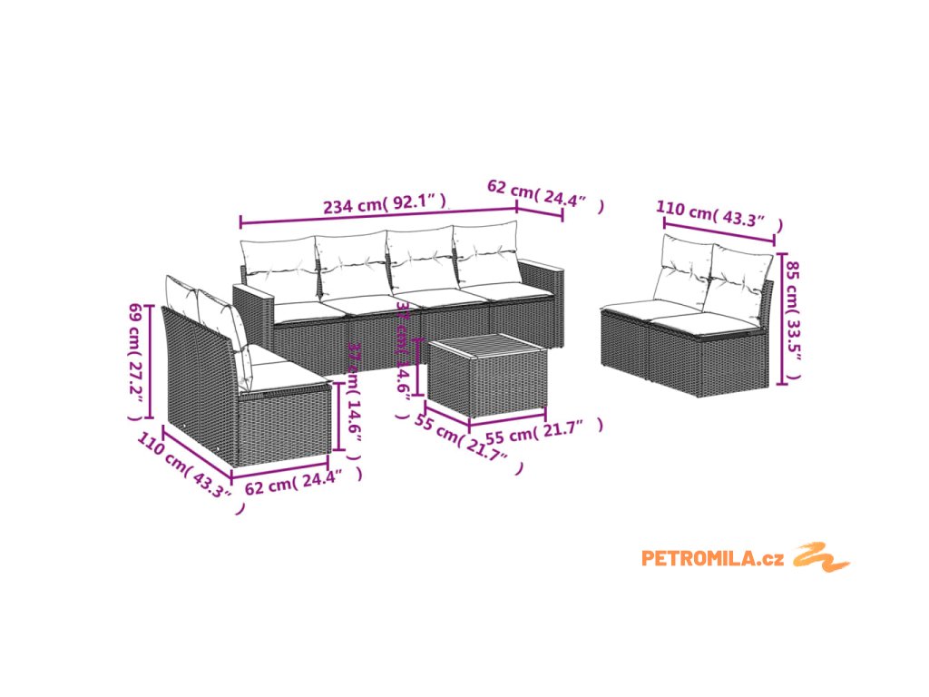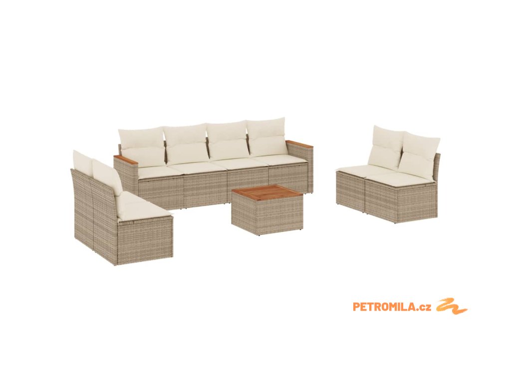 Sada zahradních pohovek s polštářem 9 pcs Béžová Poly ratan