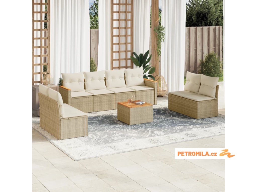 9dílná zahradní sedací souprava s poduškami béžová polyratan
