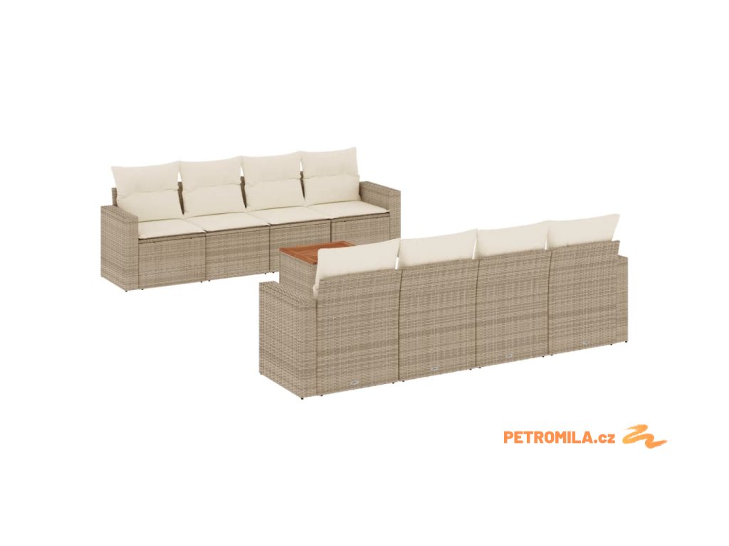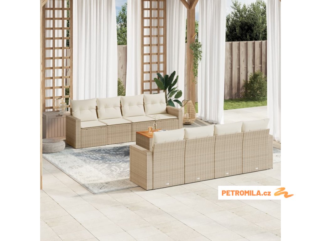 9dílná zahradní sedací souprava s poduškami béžová polyratan