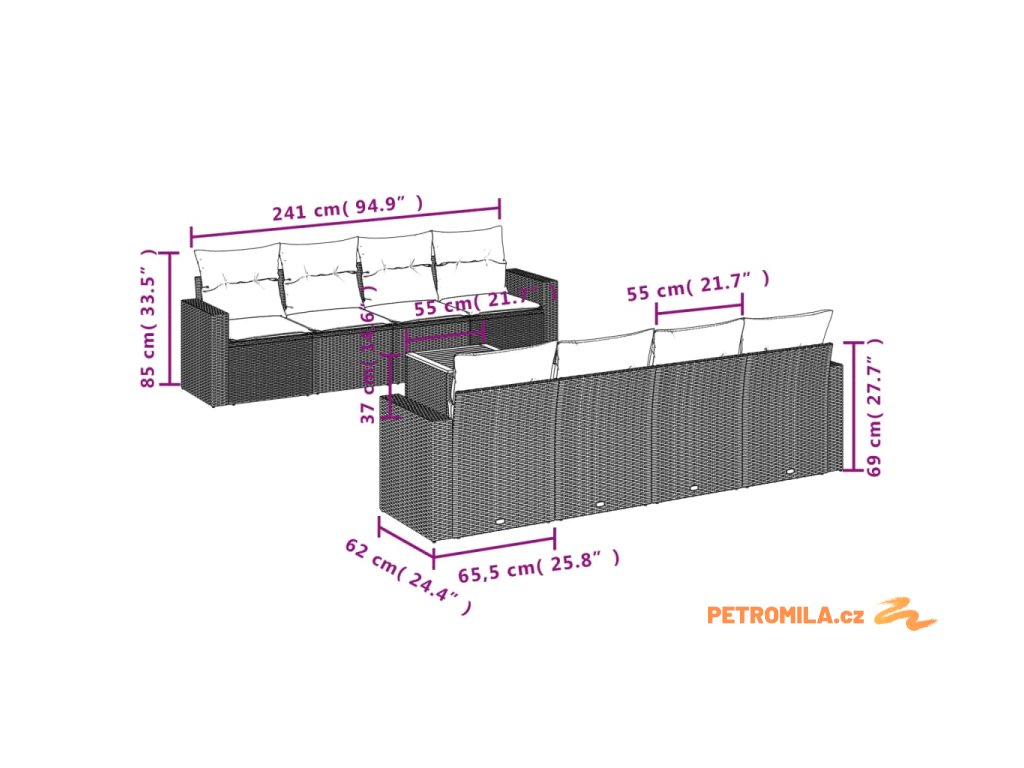 Tato zahradní sedací souprava je dokonalým doplňkem vaší zahrady, terasy nebo dvorku a poskytne vám pohodlné a příjemné místo, kde si můžete povídat s rodinou a přáteli nebo jen tak odpočívat a užívat si pobyt venku.