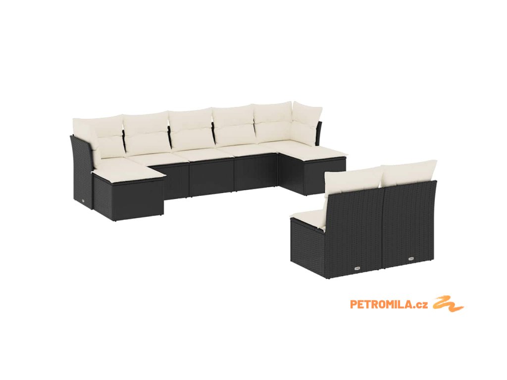 9dílná zahradní sedací souprava s poduškami černá polyratan