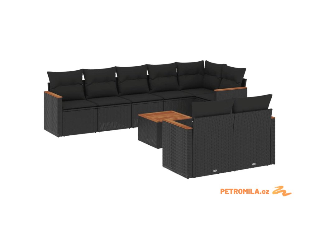 9dílná zahradní sedací souprava s poduškami černá polyratan