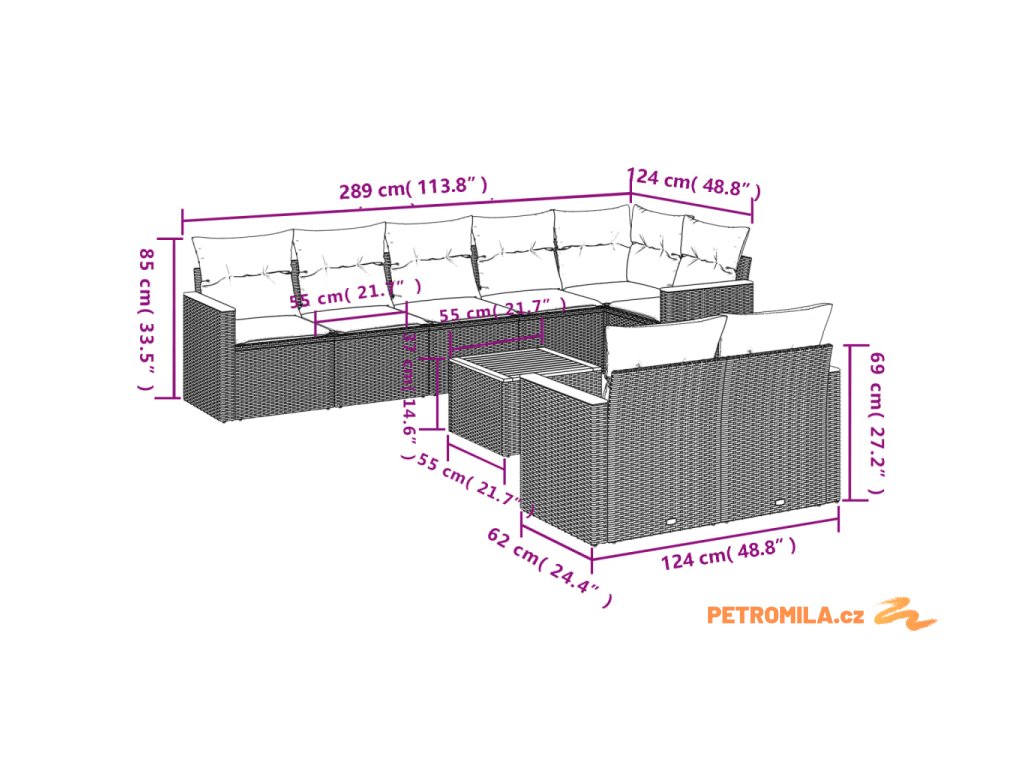 Sada zahradních pohovek s polštářem s úložištěm 8 pcs polyratan