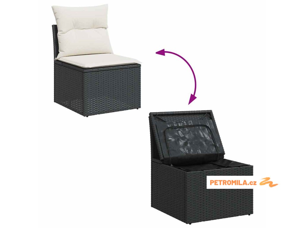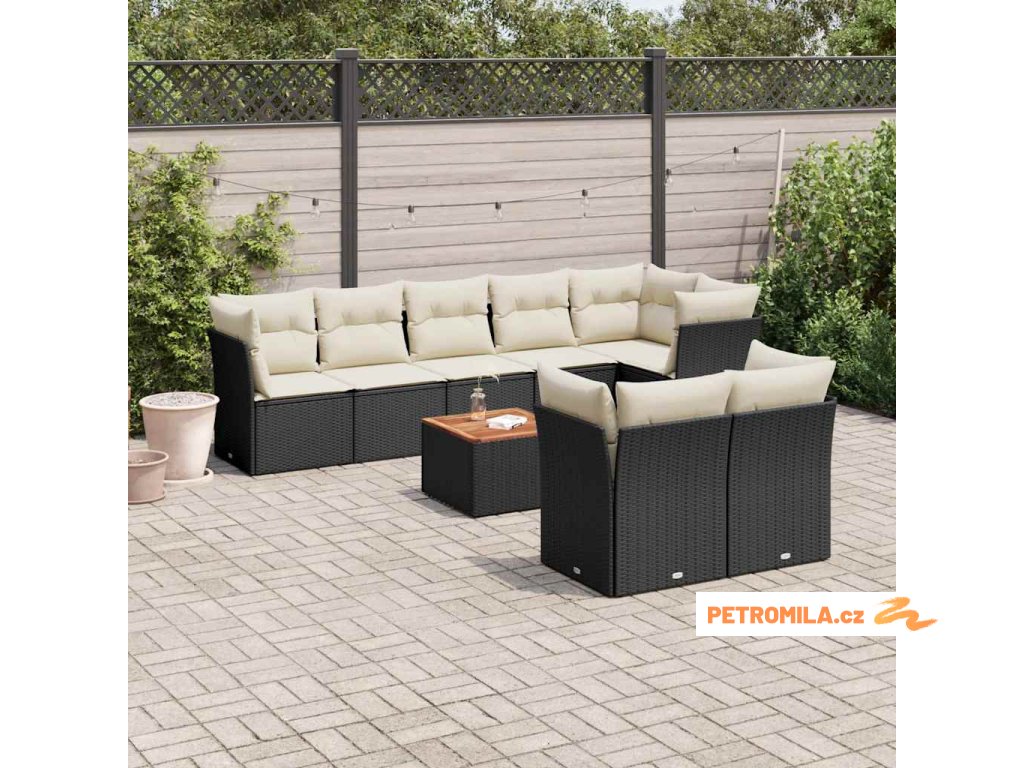 9dílná zahradní sedací souprava s poduškami černá polyratan