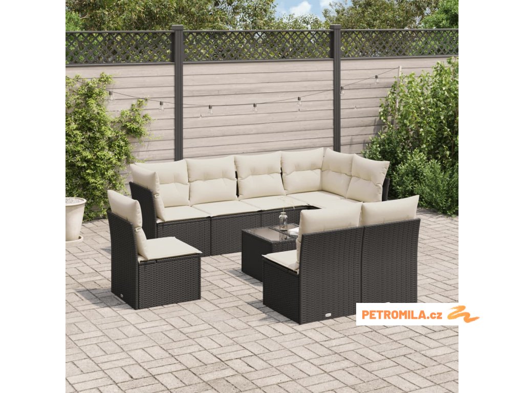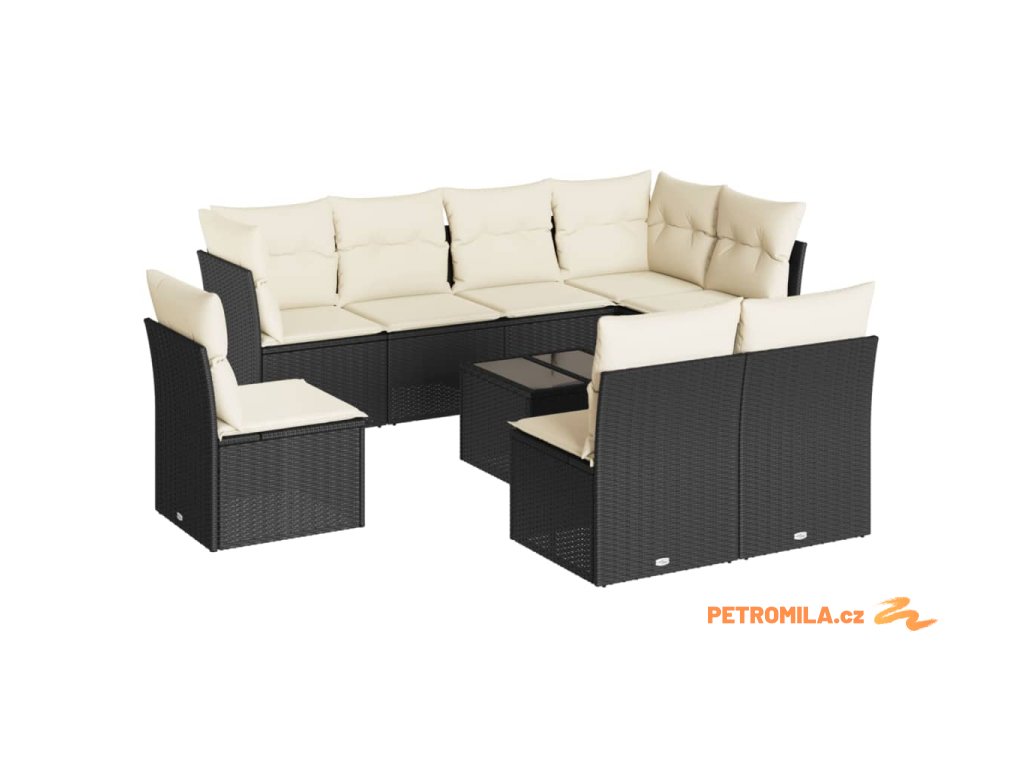 9dílná zahradní sedací souprava s poduškami černá polyratan