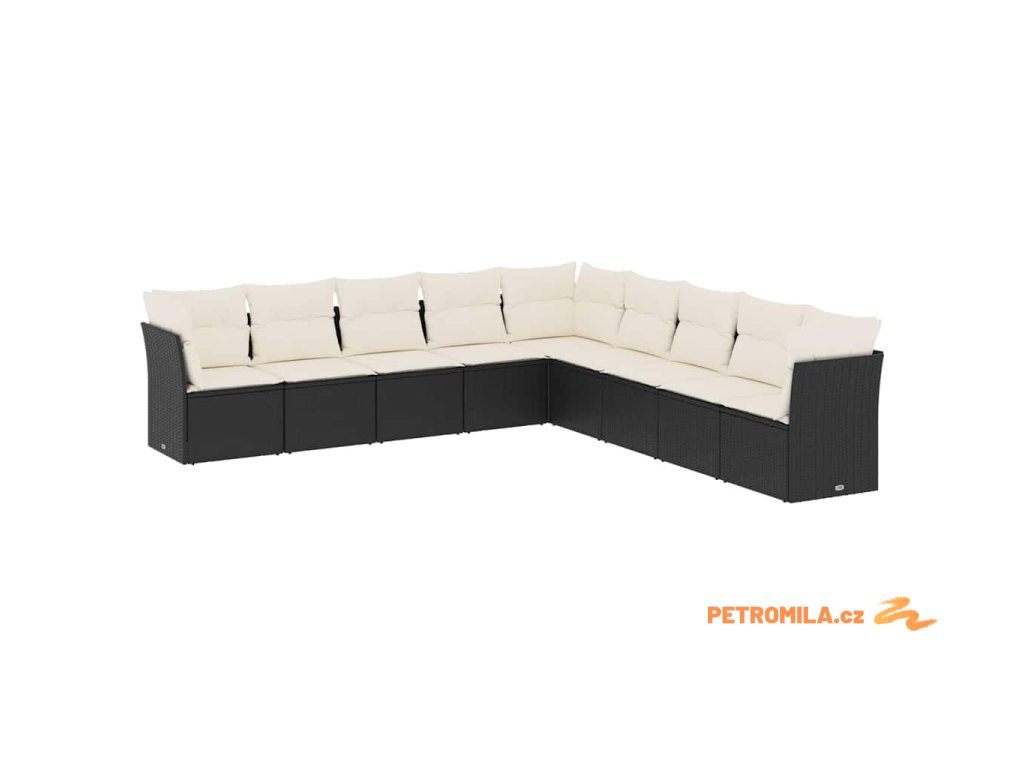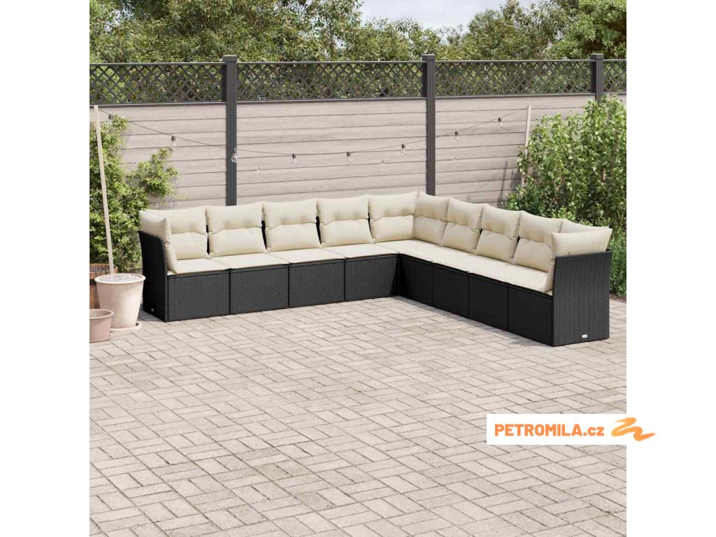 9dílná zahradní sedací souprava s poduškami černá polyratan