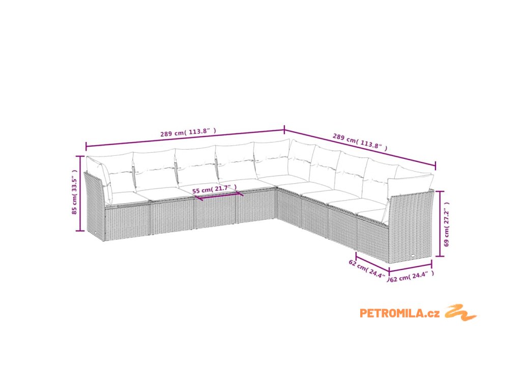 - 9x poduška na sedák s odnímatelným a pratelným potahem