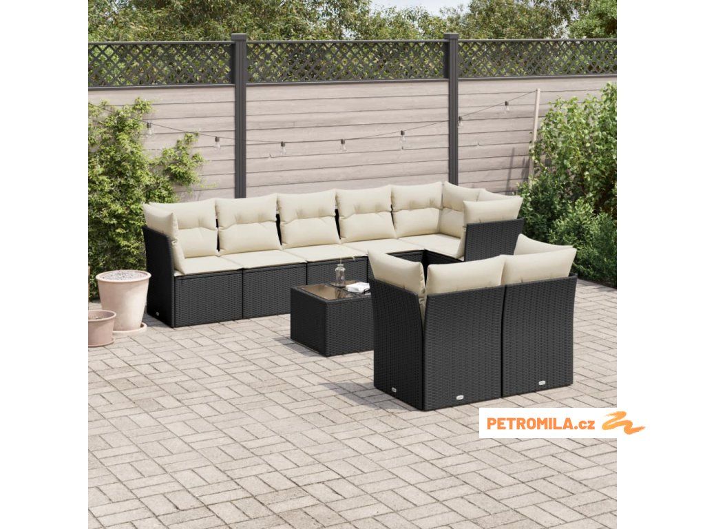9dílná zahradní sedací souprava s poduškami černá polyratan