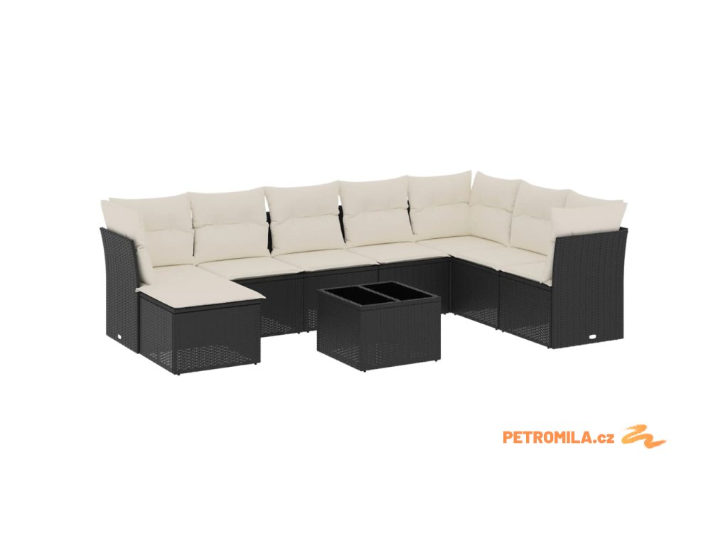 9dílná zahradní sedací souprava s poduškami černá polyratan