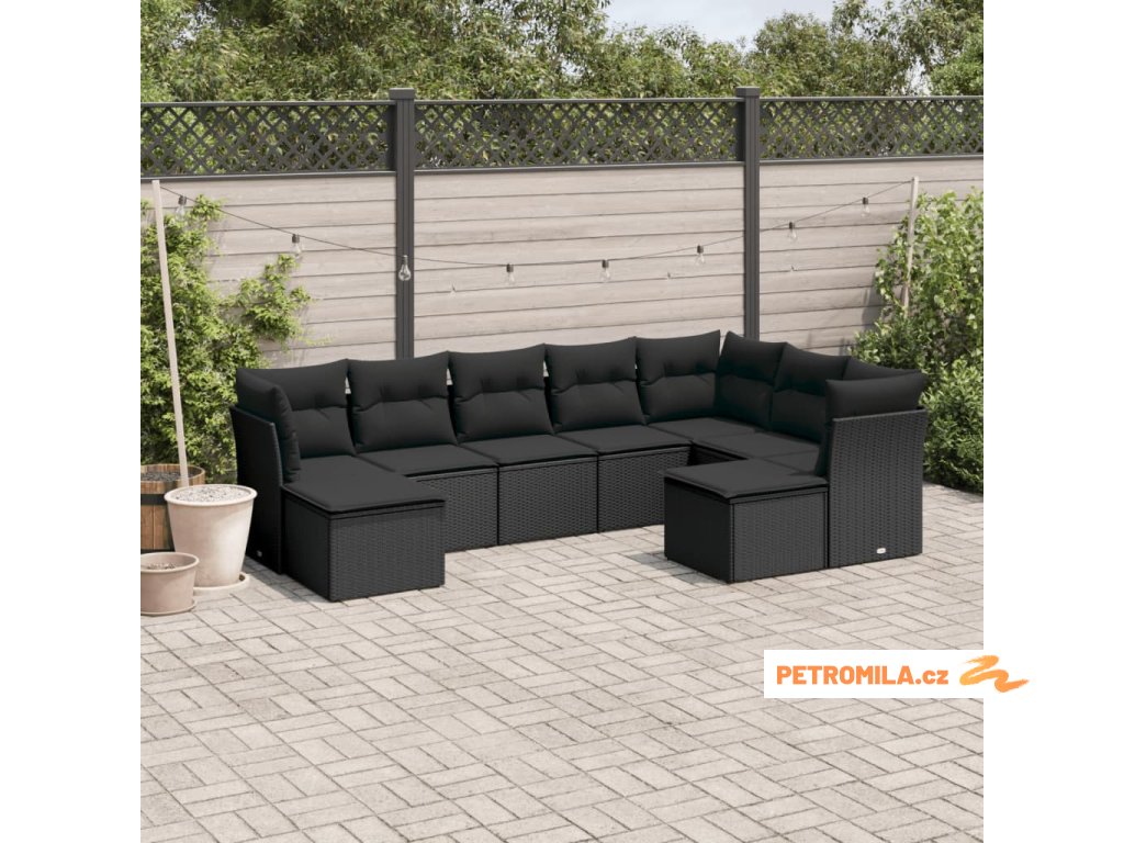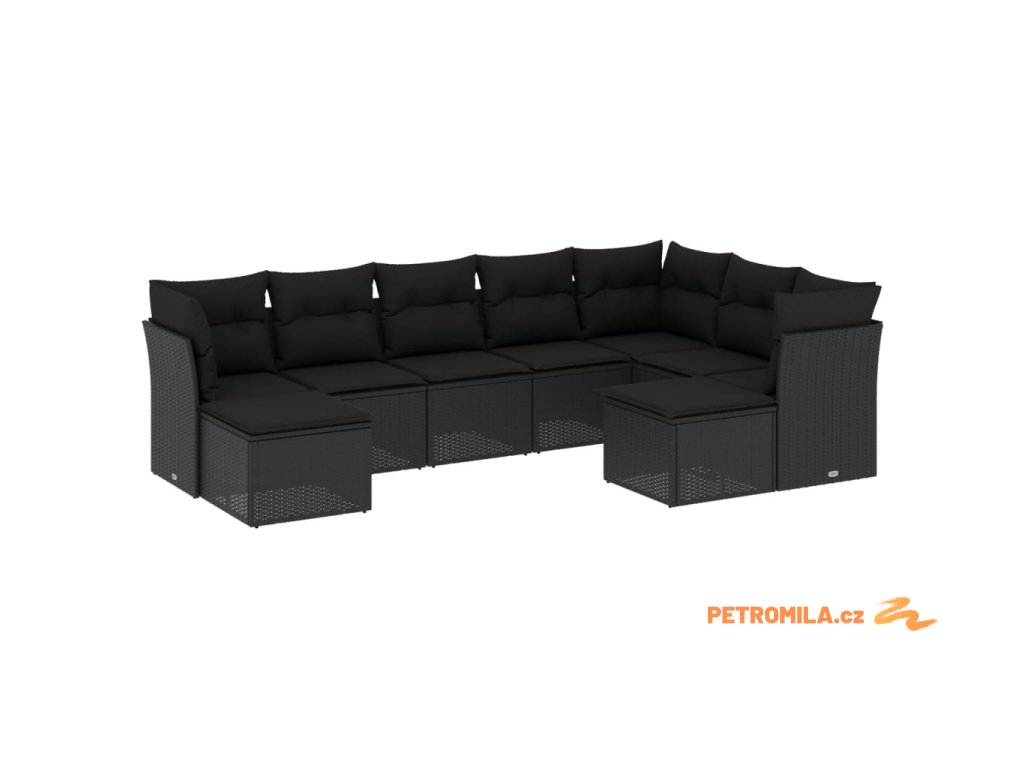 9dílná zahradní sedací souprava s poduškami černá polyratan