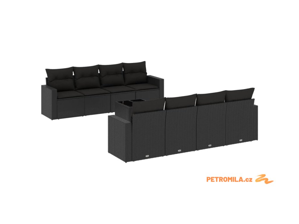 9dílná zahradní sedací souprava s poduškami černá polyratan