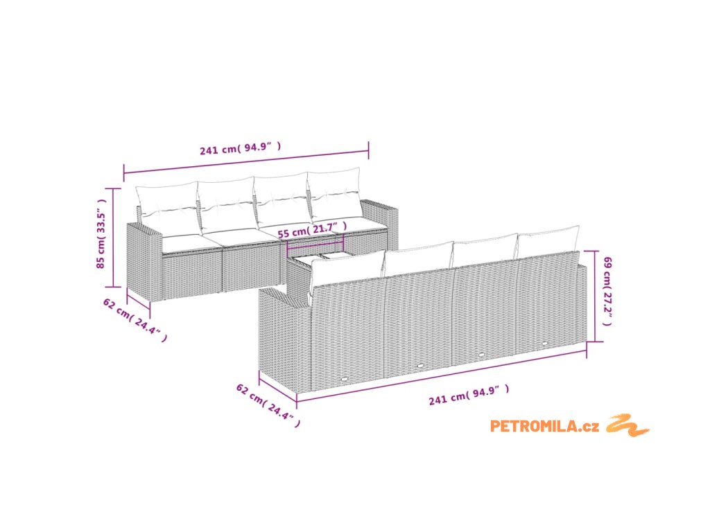 Tato zahradní sedací souprava je dokonalým doplňkem vaší zahrady, terasy nebo dvorku a poskytne vám pohodlné a příjemné místo, kde si můžete povídat s rodinou a přáteli nebo jen tak odpočívat a užívat si pobyt venku.