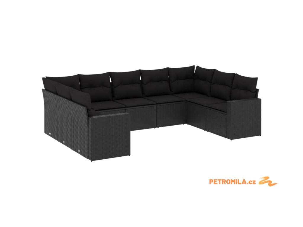 9dílná zahradní sedací souprava s poduškami černá polyratan
