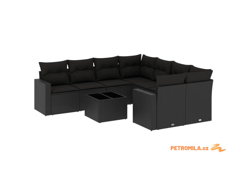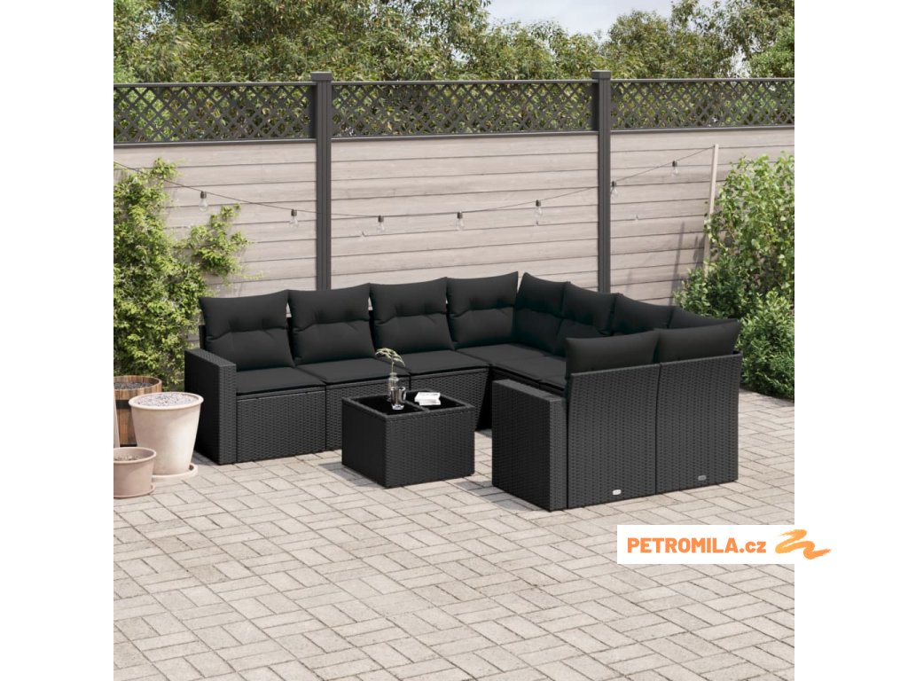 9dílná zahradní sedací souprava s poduškami černá polyratan