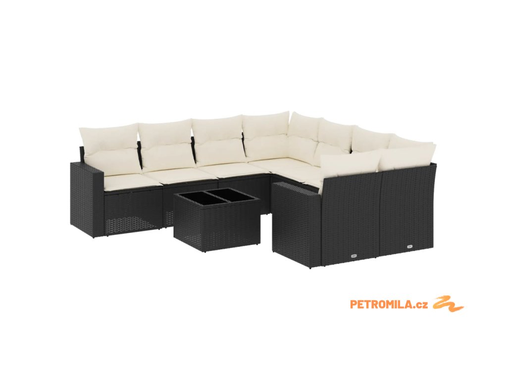 9dílná zahradní sedací souprava s poduškami černá polyratan