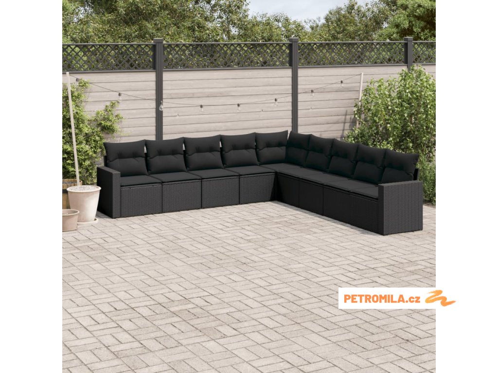 9dílná zahradní sedací souprava s poduškami černá polyratan