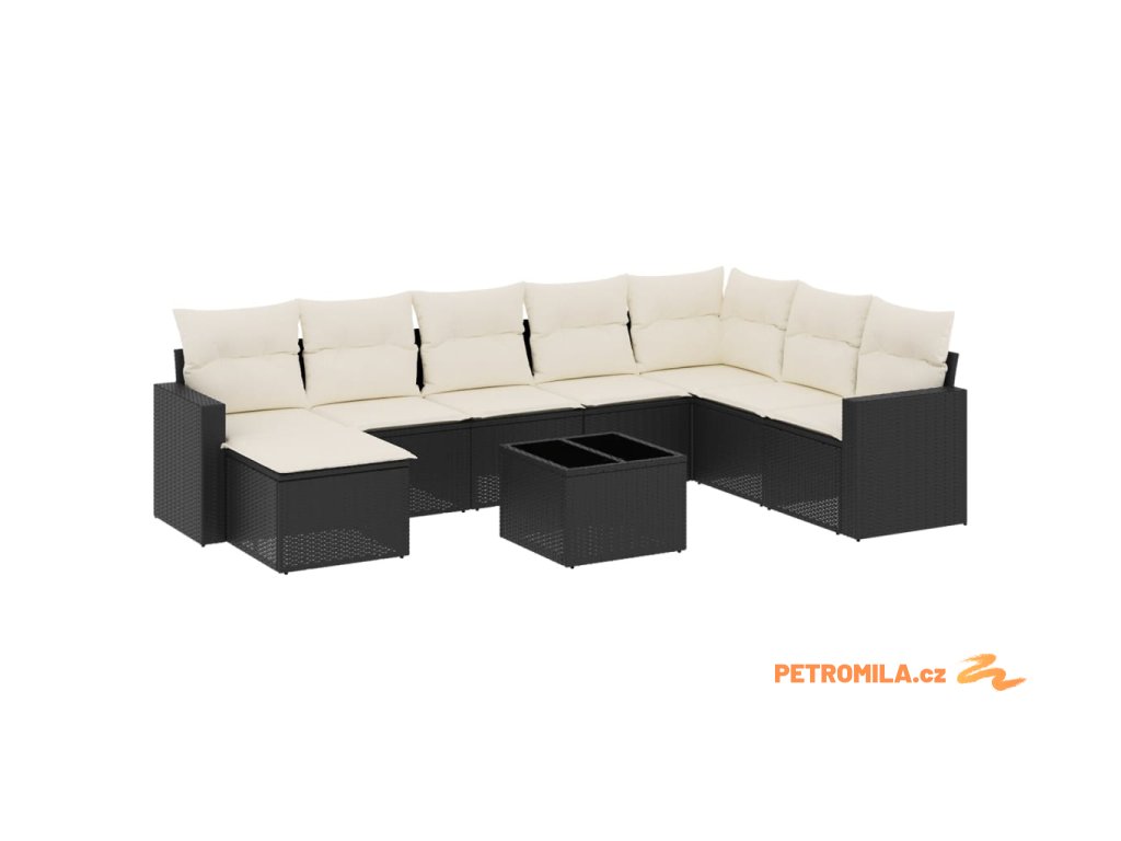9dílná zahradní sedací souprava s poduškami černá polyratan