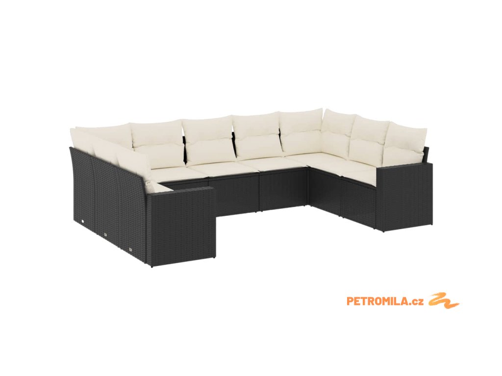 9dílná zahradní sedací souprava s poduškami černá polyratan