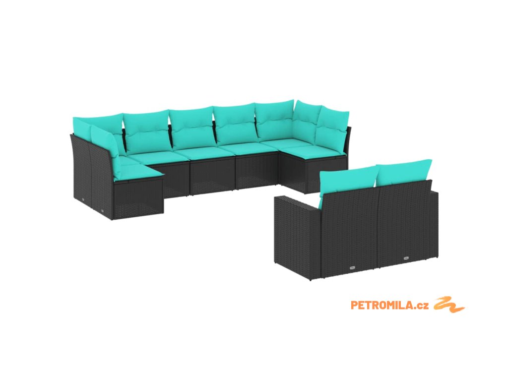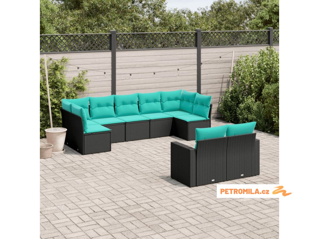 9dílná zahradní sedací souprava s poduškami černá polyratan