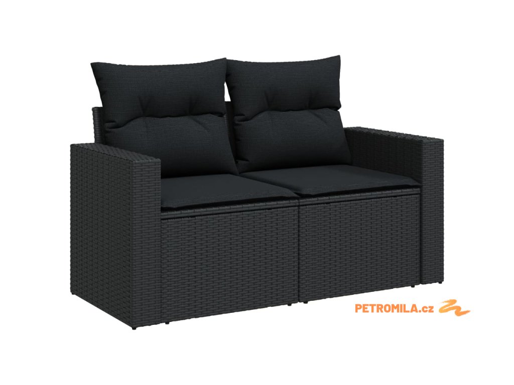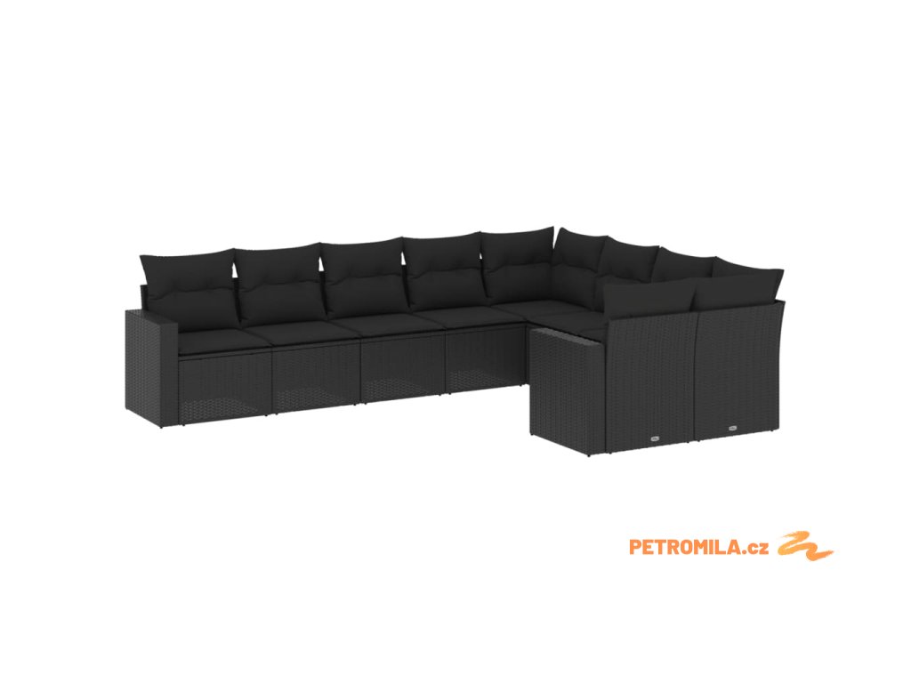 9dílná zahradní sedací souprava s poduškami černá polyratan