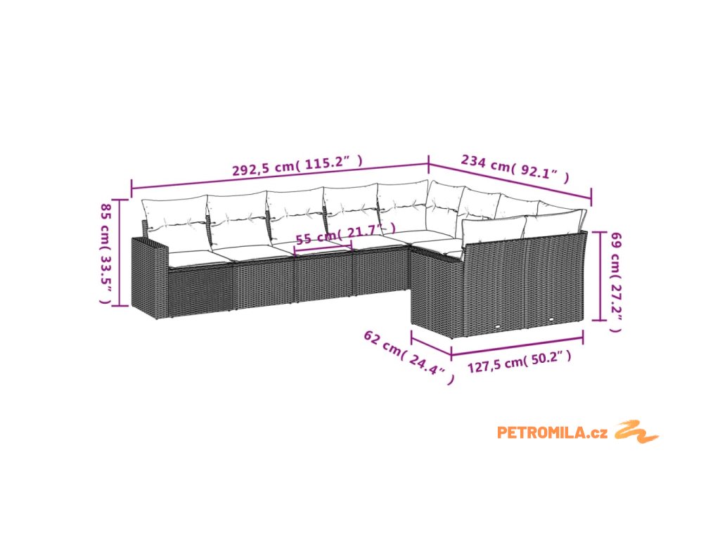 - Rozměry podušky za záda: 55 x 45 x 13 cm (D x Š x T)