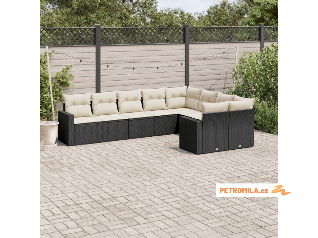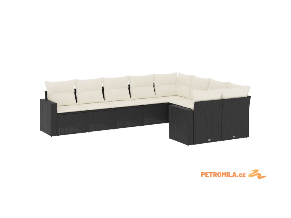 9dílná zahradní sedací souprava s poduškami černá polyratan