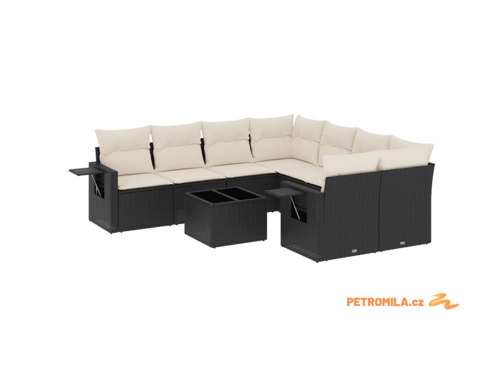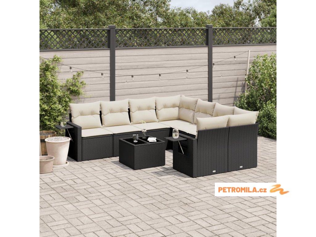 9dílná zahradní sedací souprava s poduškami černá polyratan
