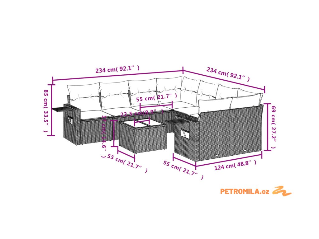 Tato zahradní sedací souprava je dokonalým doplňkem vaší zahrady, terasy nebo dvorku a poskytne vám pohodlné a příjemné místo, kde si můžete povídat s rodinou a přáteli nebo jen tak odpočívat a užívat si pobyt venku.