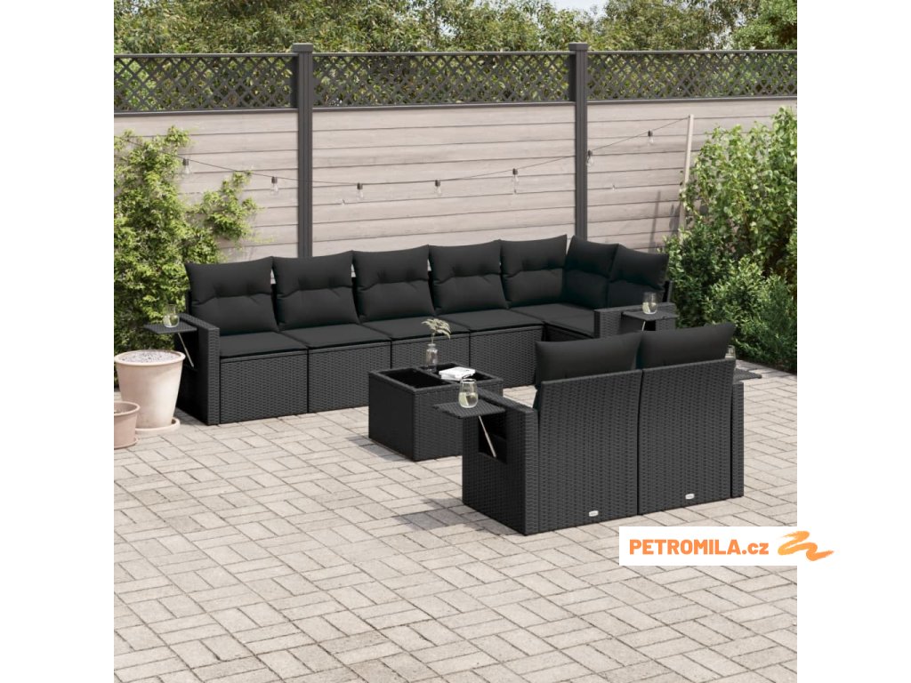 9dílná zahradní sedací souprava s poduškami černá polyratan