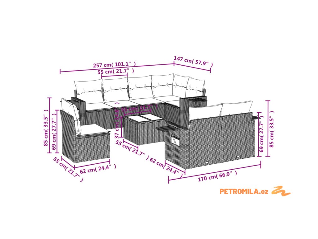 Tato zahradní sedací souprava je dokonalým doplňkem vaší zahrady, terasy nebo dvorku a poskytne vám pohodlné a příjemné místo, kde si můžete povídat s rodinou a přáteli nebo jen tak odpočívat a užívat si pobyt venku.