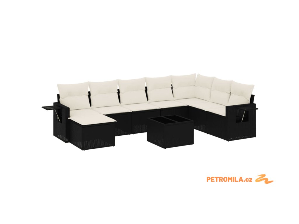9dílná zahradní sedací souprava s poduškami černá polyratan