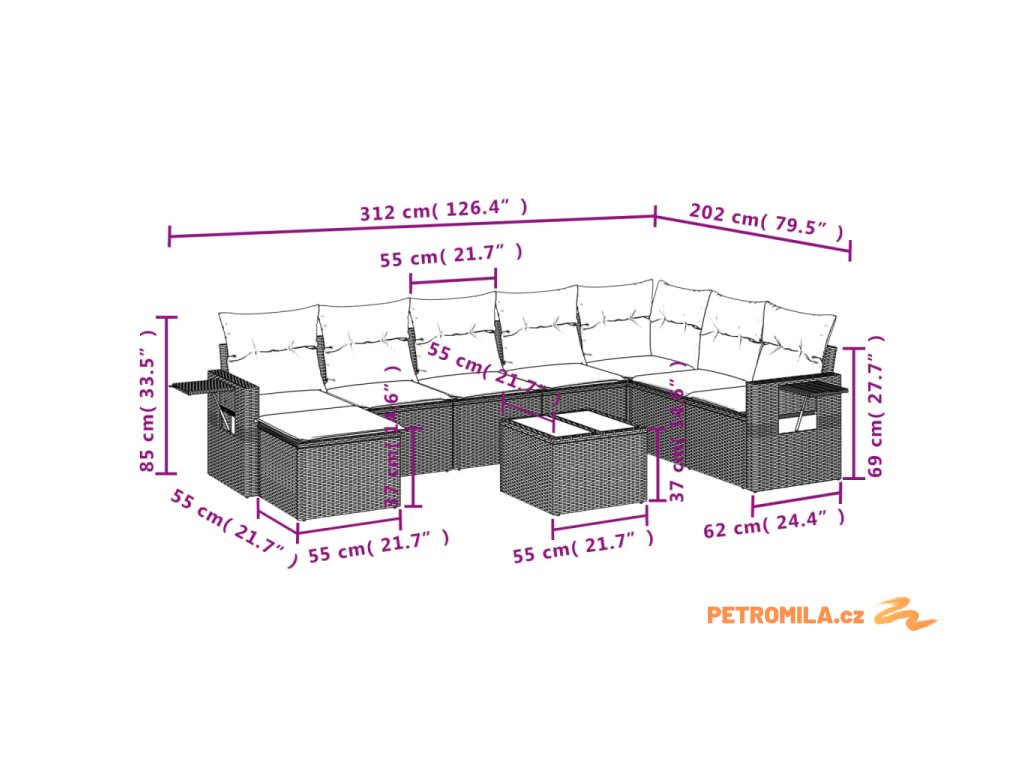 9dílná zahradní sedací souprava a podušky světle šedá polyratan