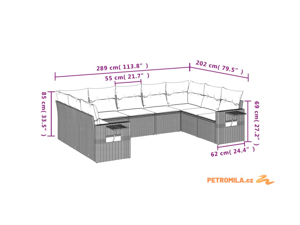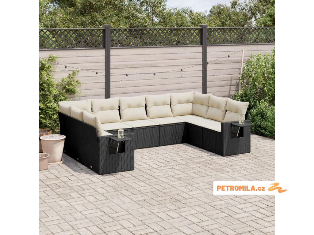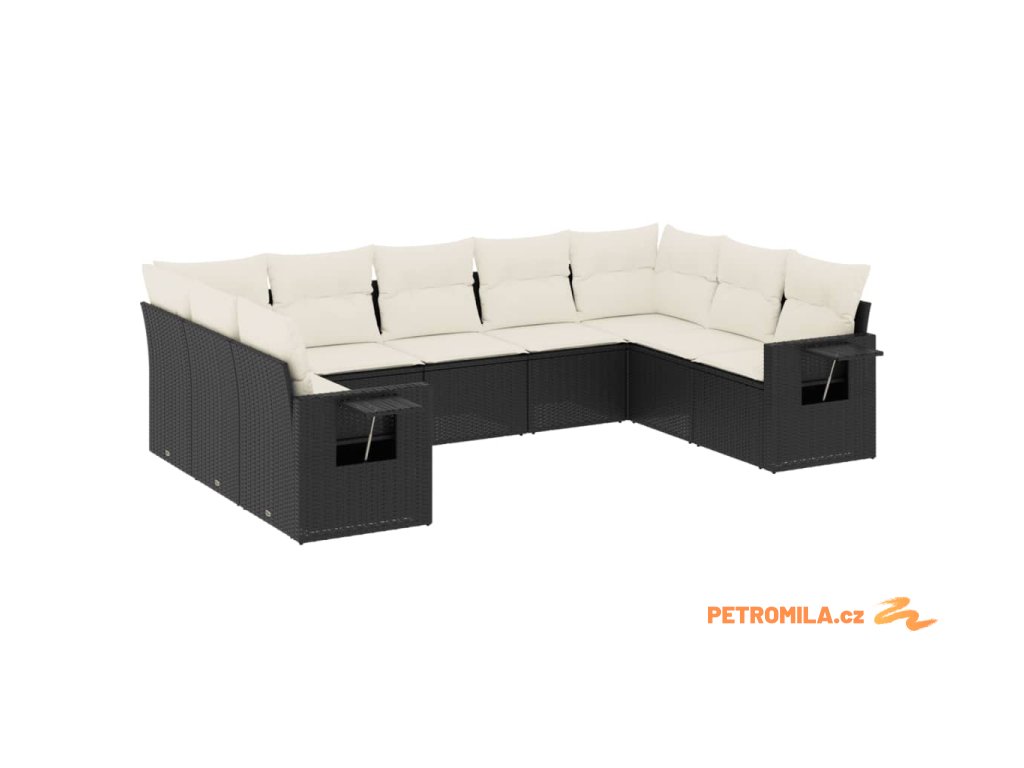 9dílná zahradní sedací souprava s poduškami černá polyratan